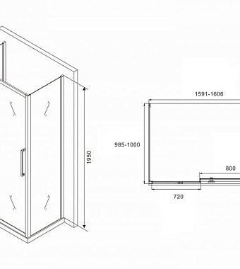 Угловое ограждение Abber Schwarzer Diamant AG30160H-S100-S100 195х100см стекло прозрачное - купить в интернет-магазине Орегон с доставкой в регионы Крыма.