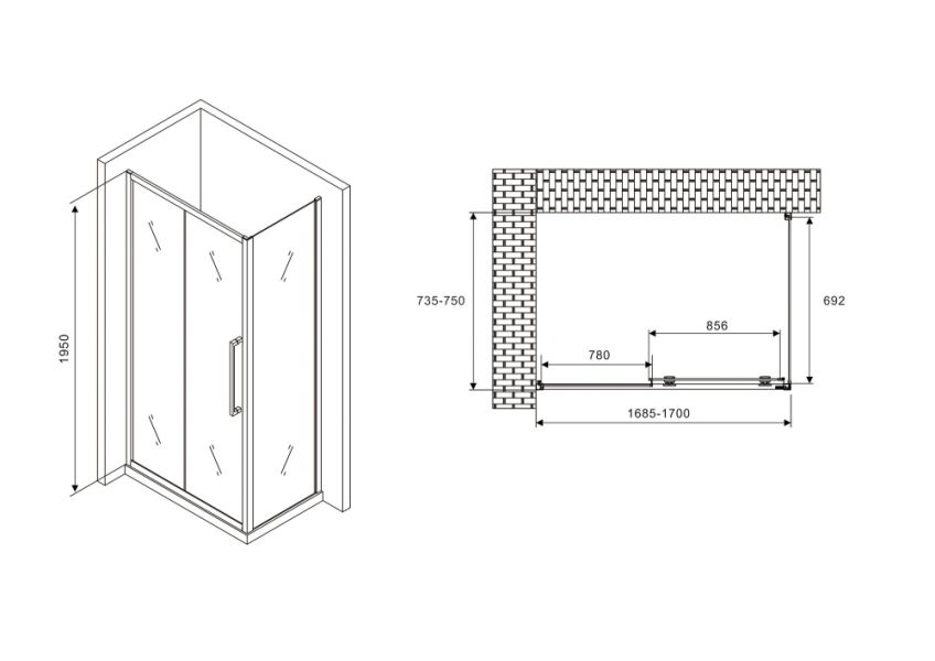 Угловое ограждение Abber Schwarzer Diamant AG30170BH-S75B 195х75см стекло прозрачное - купить в интернет-магазине Орегон с доставкой в регионы Крыма.