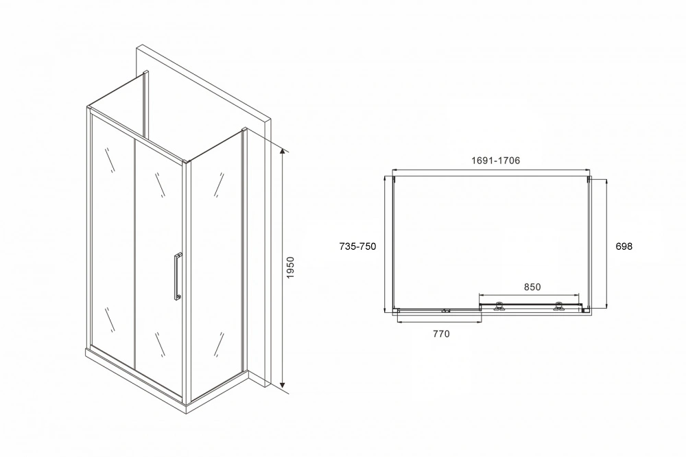 «Угловое ограждение Abber Schwarzer Diamant AG30170H-S75-S75 195х75см стекло прозрачное» в Ялте и Крыму