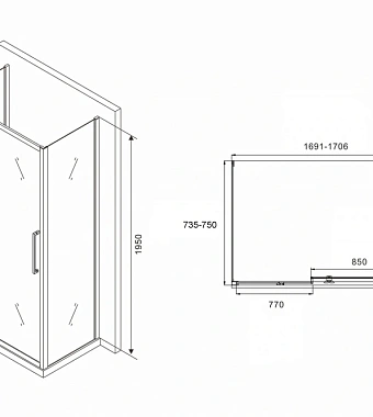 Угловое ограждение Abber Schwarzer Diamant AG30170H-S75-S75 195х75см стекло прозрачное - купить в интернет-магазине Орегон с доставкой в регионы Крыма.