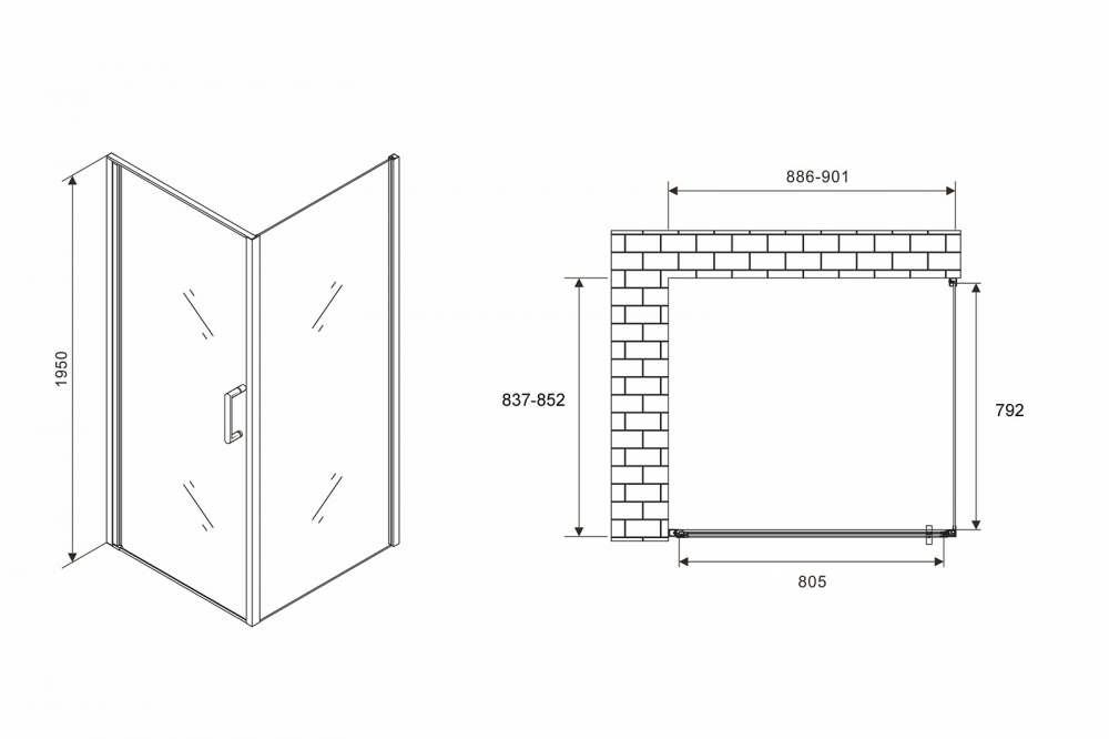 Угловое ограждение Abber Sonnenstrand AG04090M-S85M 195х85см стекло матовое - купить в интернет-магазине Орегон с доставкой в регионы Крыма.