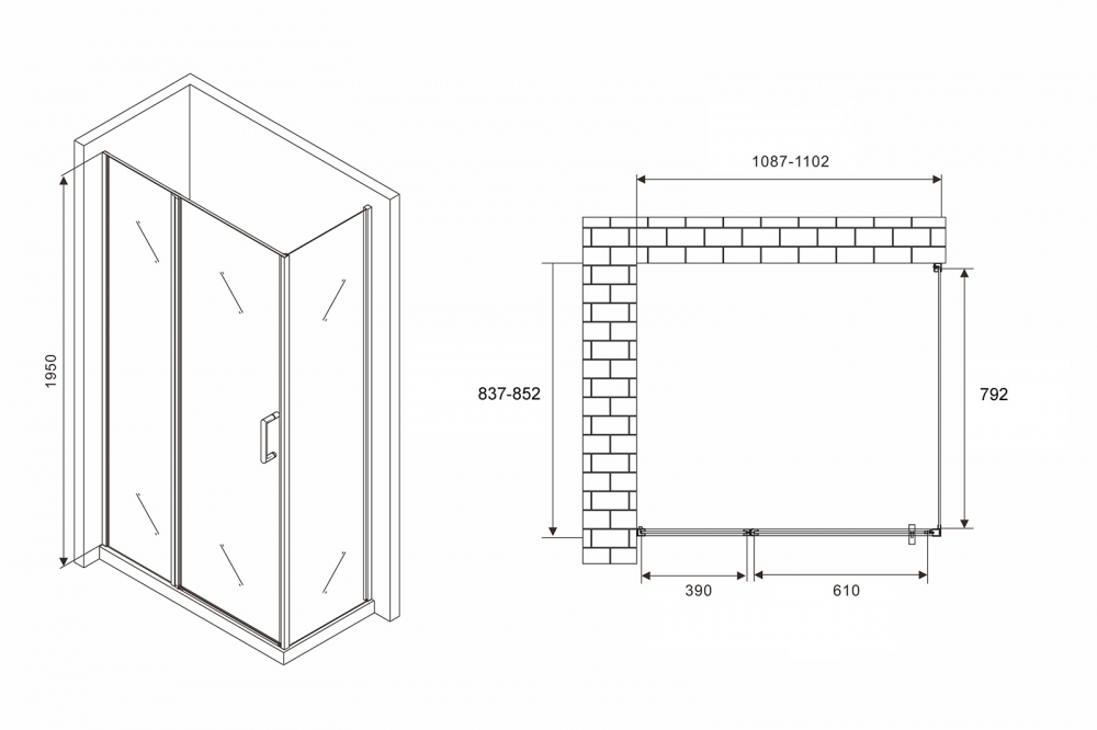 Угловое ограждение Abber Sonnenstrand AG04110MS-S85M 195х85см стекло матовое - купить в интернет-магазине Орегон с доставкой в регионы Крыма.