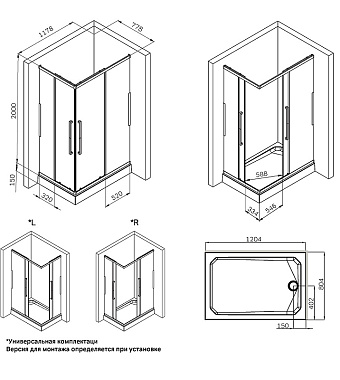 «Угловое ограждение AM-PM Func W84G-403-9090-BТ 200х87,8см стекло прозрачное» в Ялте и Крыму