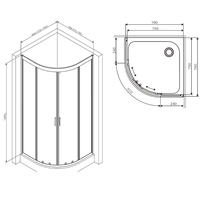 «Угловое ограждение AM-PM Gem W90G-401-080BT 190х80см стекло прозрачное» в Ялте и Крыму