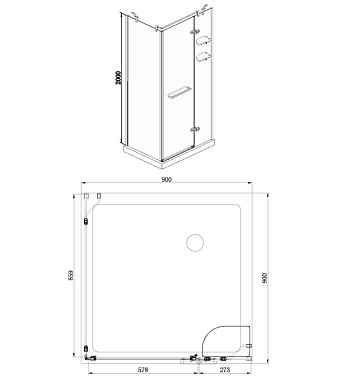 Угловое ограждение Azario Montreal AZ-NWG1231-L 200х90см стекло прозрачное