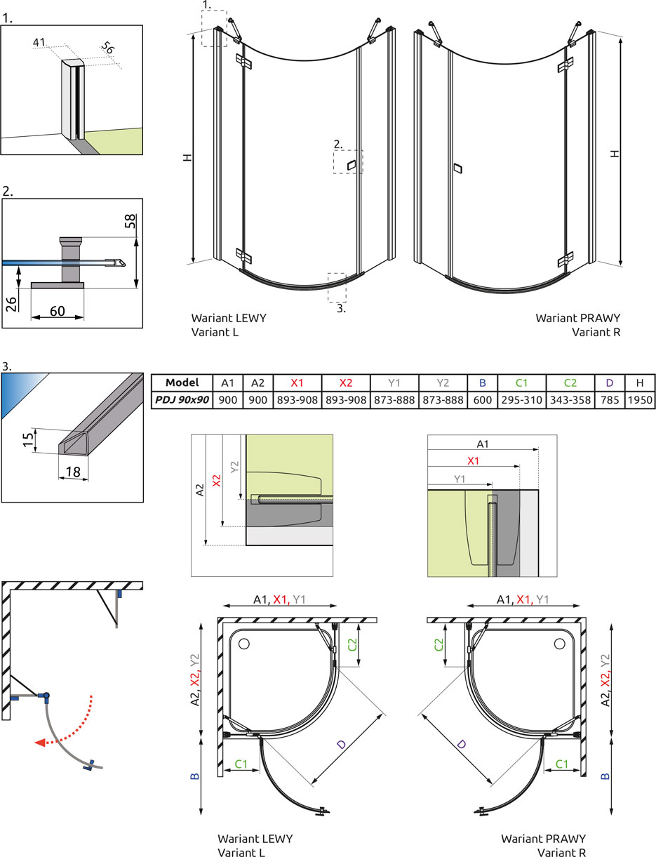 Угловое ограждение RADAWAY Almatea PDJ 90 R 195х90см стекло графитовое - купить в интернет-магазине Орегон с доставкой в регионы Крыма.