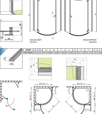 «Угловое ограждение RADAWAY Almatea PDJ 90 R 195х90см стекло графитовое» в Ялте и Крыму