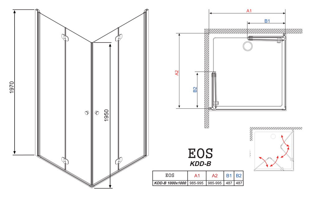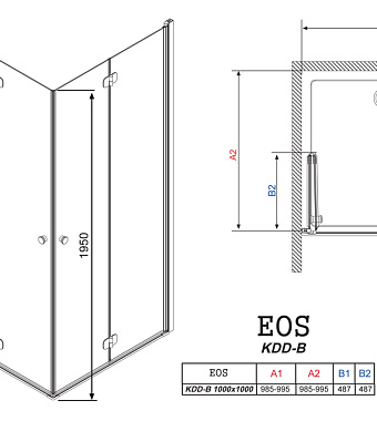 Угловое ограждение RADAWAY Eos KDD-B 100 197х100см стекло интимато - купить в интернет-магазине Орегон с доставкой в регионы Крыма.