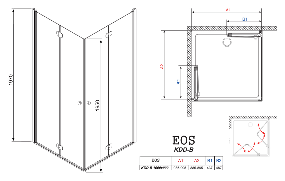 Угловое ограждение RADAWAY Eos KDD-B 100x90 197х100см стекло интимато - купить в интернет-магазине Орегон с доставкой в регионы Крыма.