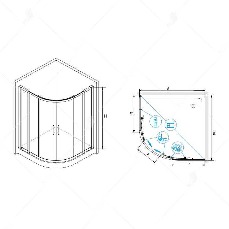 Угловое ограждение RGW Hotel 030651133-11 HO-511 195х130см стекло прозрачное - купить в интернет-магазине Орегон с доставкой в регионы Крыма.