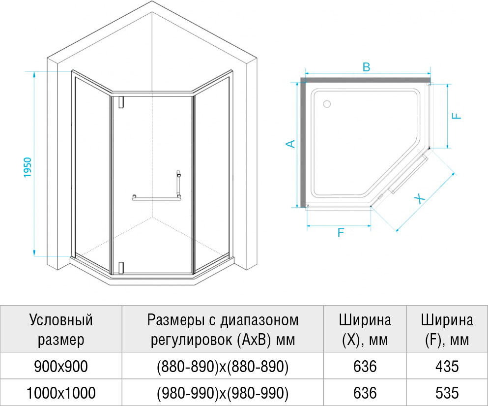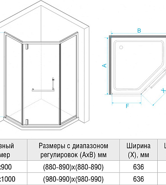 Угловое ограждение RGW Hotel HO-084W 195х100см стекло матовое-сатинат