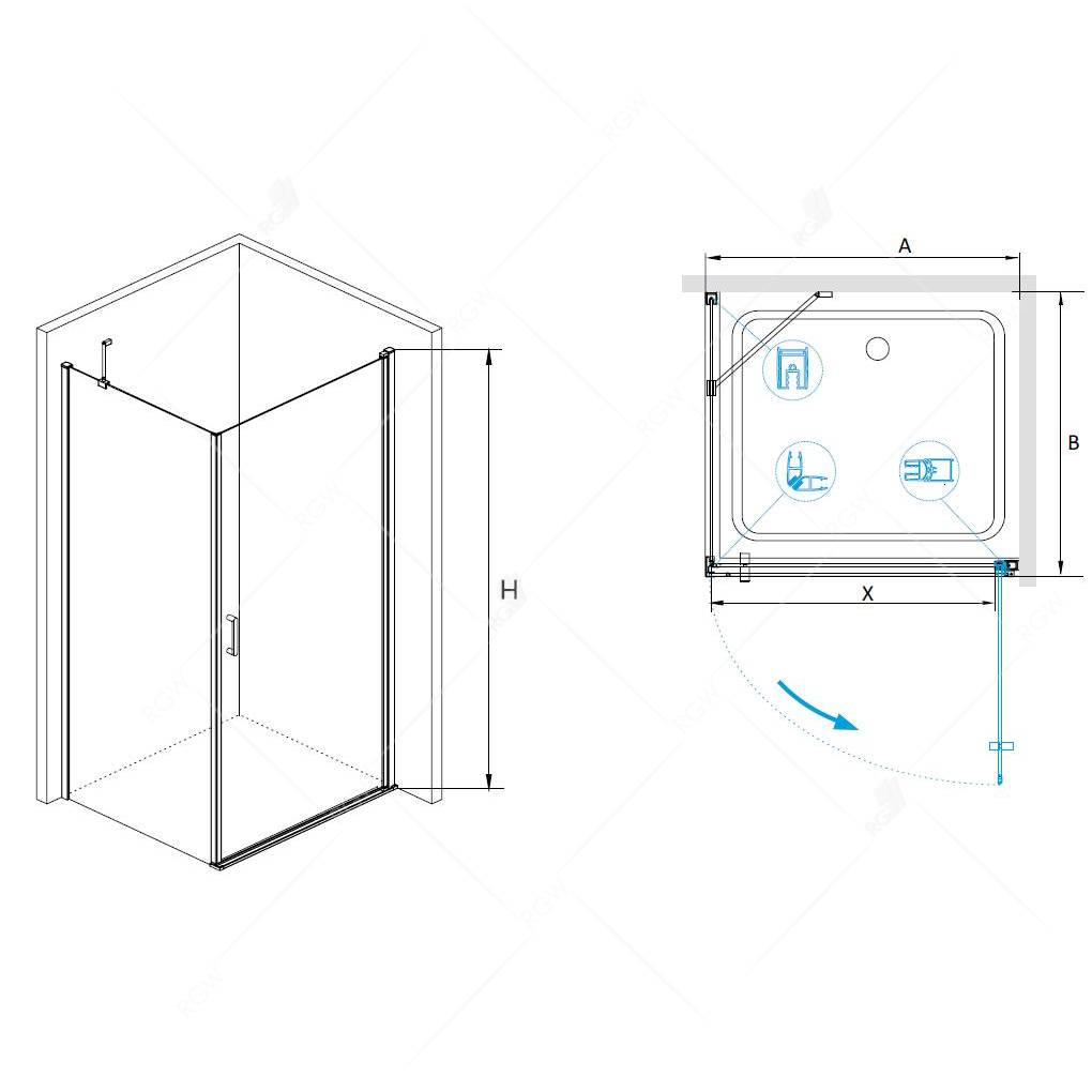 Угловое ограждение RGW Leipzig 06123498-11 LE-34(LE-03+Z-14) 195х90см стекло прозрачное - купить в интернет-магазине Орегон с доставкой в регионы Крыма.