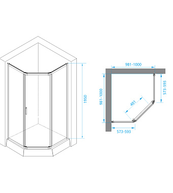 Угловое ограждение RGW Passage 38088600-11 PA-86 195х100см стекло прозрачное