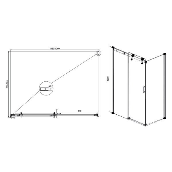 Угловое ограждение SOLE Open О0000033214 190х120см стекло прозрачное