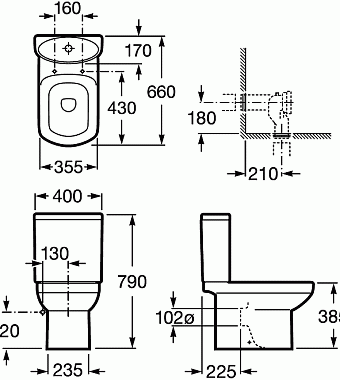 Унитаз напольный ROCA Dama Senso 7.3425.1.700.0 ободковый без микролифта