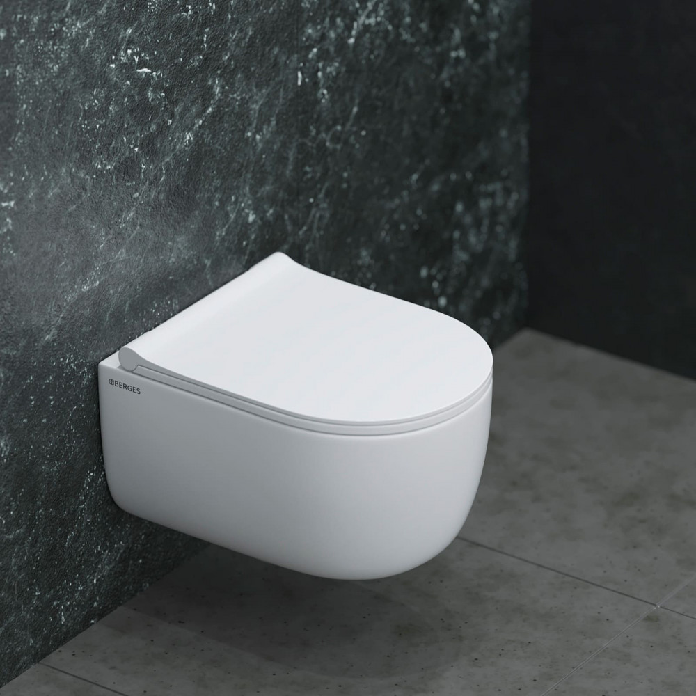 Унитаз подвесной BERGES EGO RR 082111RR безободковый с микролифтом - купить в интернет-магазине Орегон с доставкой в регионы Крыма.