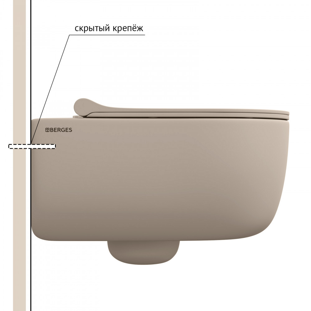 Унитаз подвесной BERGES EGO XL 082728 безободковый с микролифтом