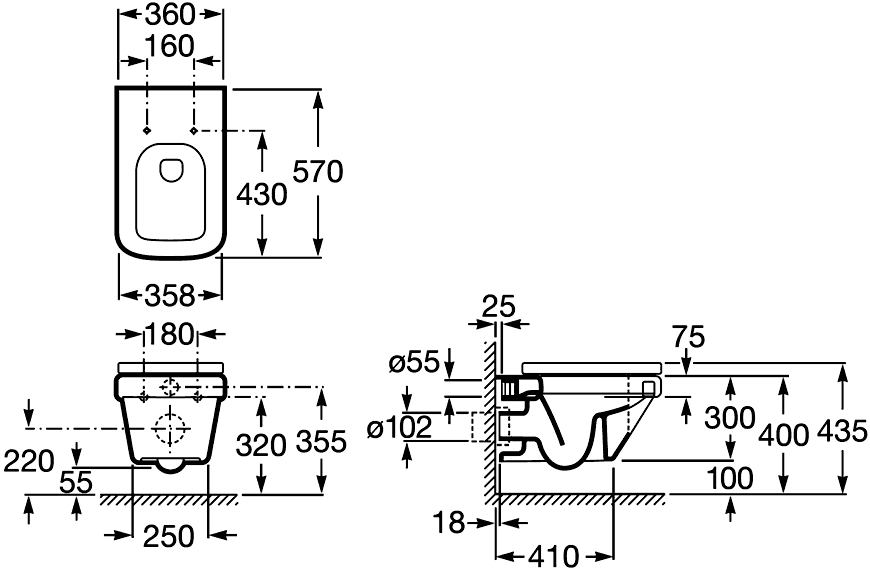 Унитаз подвесной ROCA Dama-N 7.3467.8.700.0 ободковый с микролифтом - купить в интернет-магазине Орегон с доставкой в регионы Крыма.