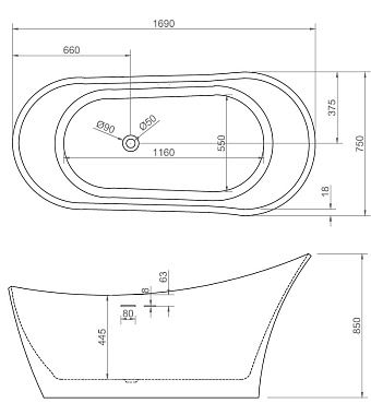 Тип ванны отдельностоящая