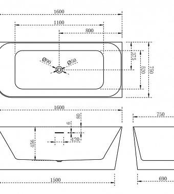 Ванна акриловая Abber AB9331-1.6 R 160х75см пристенная - купить в интернет-магазине Орегон с доставкой в регионы Крыма.
