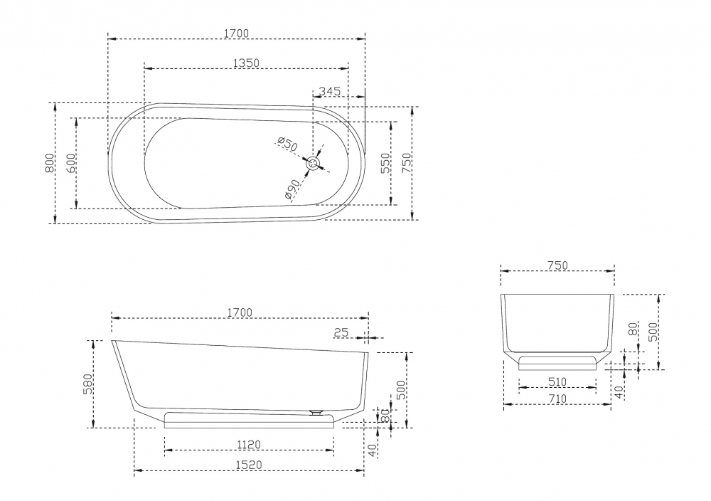 Тип ванны отдельностоящая