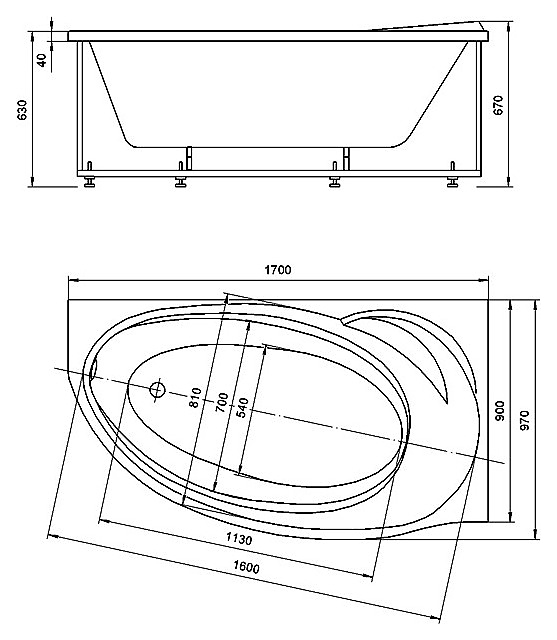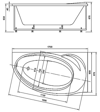 Ванна акриловая Azario PAOLINA AV.0071170 170х97см пристенная