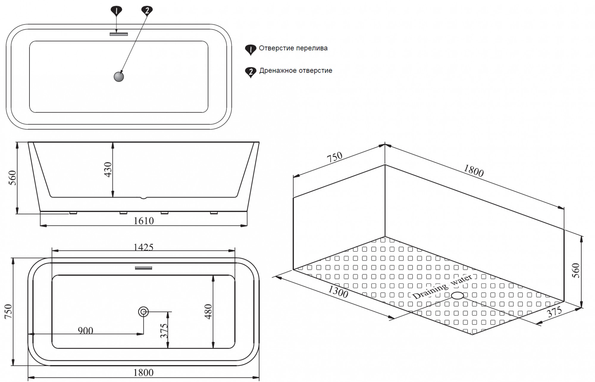 Тип ванны отдельностоящая