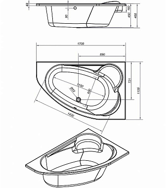 Ванна акриловая CERSANIT KALIOPE 63444 170х110см угловая