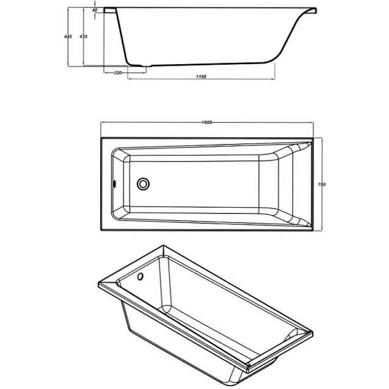 Ванна акриловая CERSANIT LORENA 63322 160х70см встраиваемая - купить в интернет-магазине Орегон с доставкой в регионы Крыма.