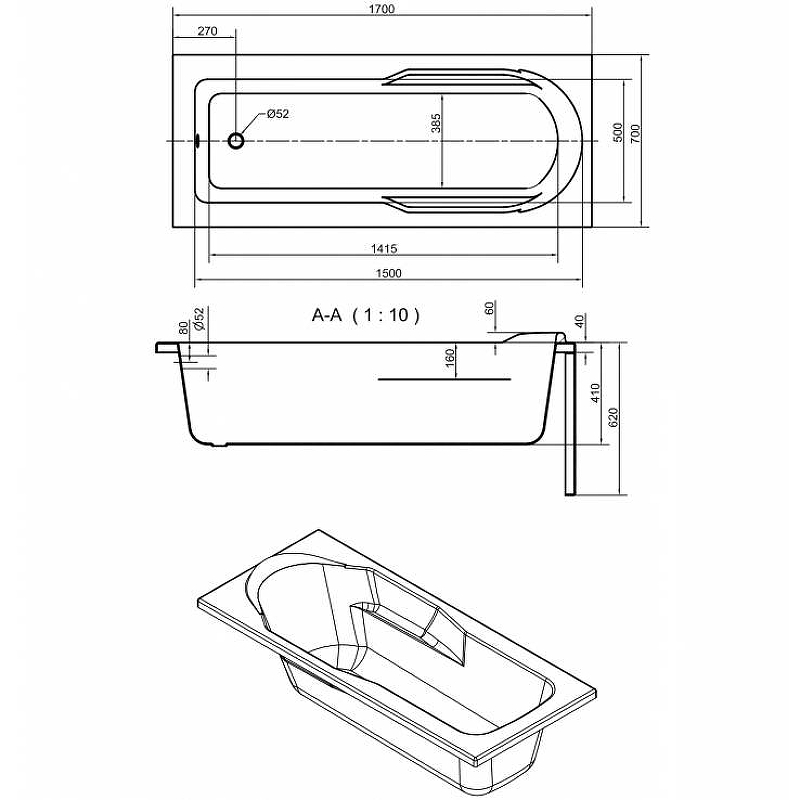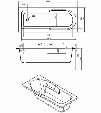 Ванна акриловая CERSANIT SANTANA 63325 170х70см встраиваемая - купить в интернет-магазине Орегон с доставкой в регионы Крыма.