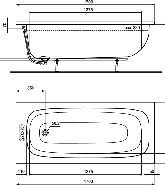 Ванна акриловая IDEAL STANDARD i.life T476001 170х75см встраиваемая - купить в интернет-магазине Орегон с доставкой в регионы Крыма.