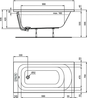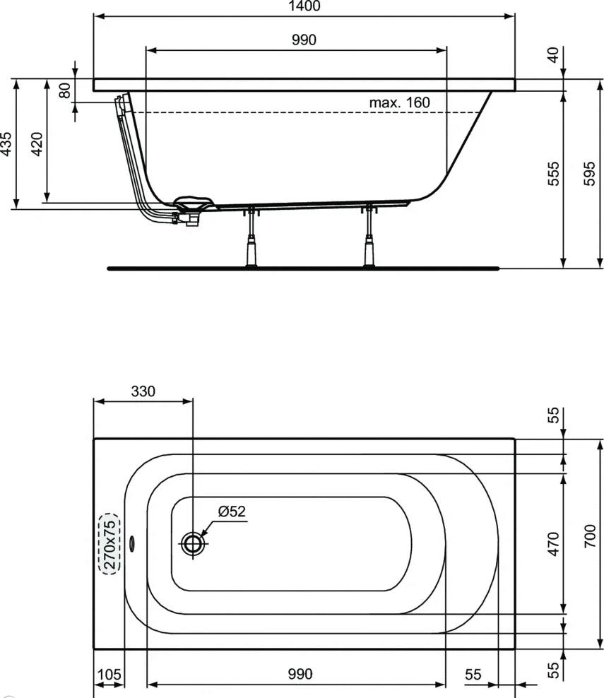Ванна акриловая IDEAL STANDARD SIMPLICITY W004101 140х70см встраиваемая - купить в интернет-магазине Орегон с доставкой в регионы Крыма.