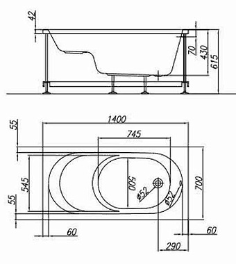 Ванна акриловая KOLPASAN Tamia 562990 140х70см пристенная