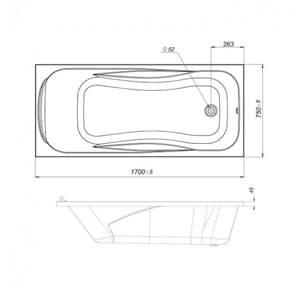 Ванна акриловая MIRSANT Азов УТ000047654 170х75см пристенная