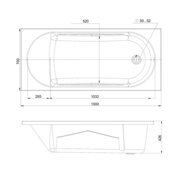 Ванна акриловая MIRSANT Каспий УТ000016528 150х70см пристенная