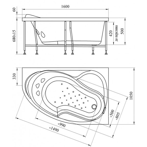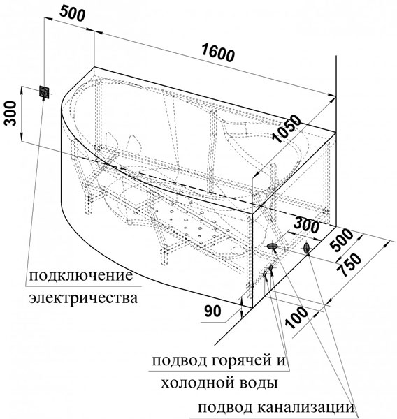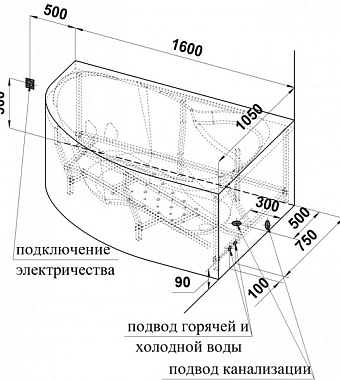 Ванна акриловая RADOMIR Амелия 1-01-0-1-1-017 160х105см пристенная