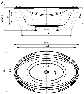 Ванна акриловая RADOMIR ГРАНАДА 4-01-0-0-1-404П 185х119см отдельностоящая