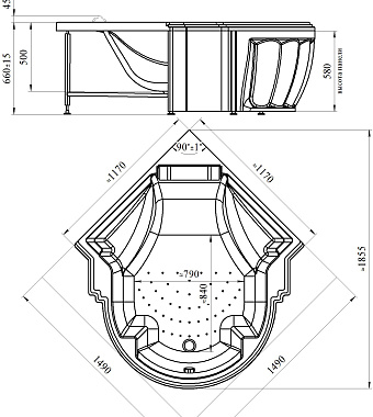 Ванна акриловая RADOMIR МОНТЕ-КАРЛО-BRONZE 4-01-4-0-0-402 149х149см пристенная - купить в интернет-магазине Орегон с доставкой в регионы Крыма.