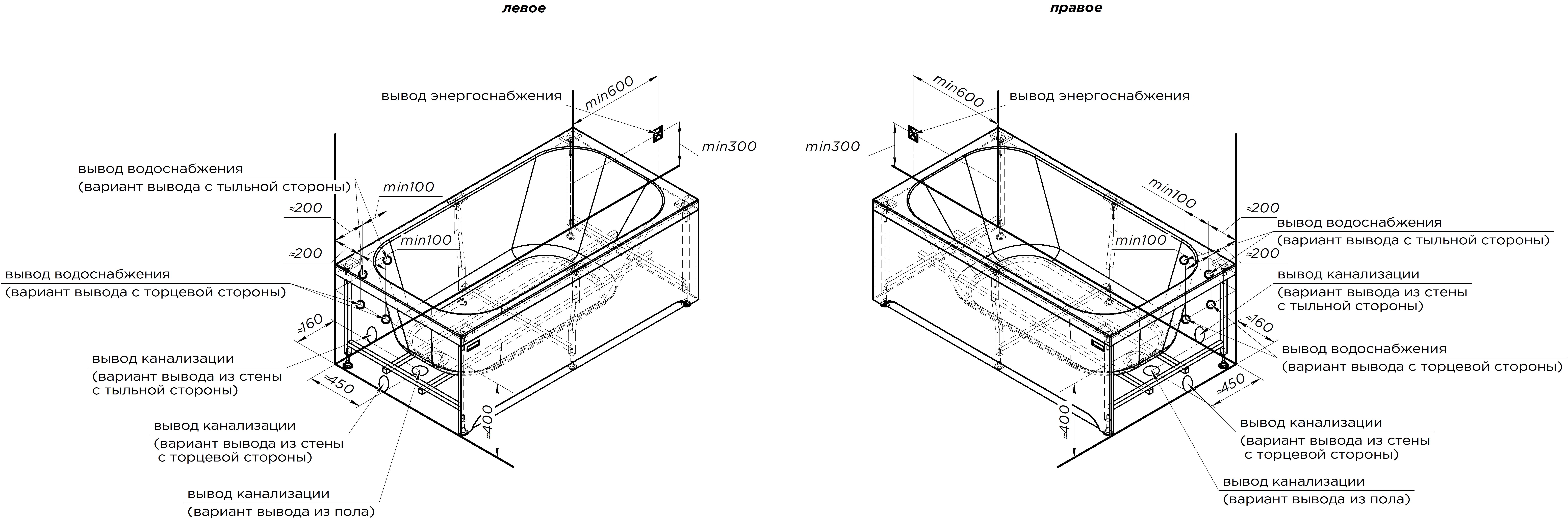 Тип ванны пристенная