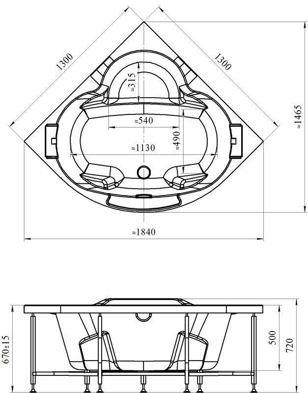 Ванна акриловая RADOMIR Сорренто 1-01-0-0-1-039 130х130см пристенная