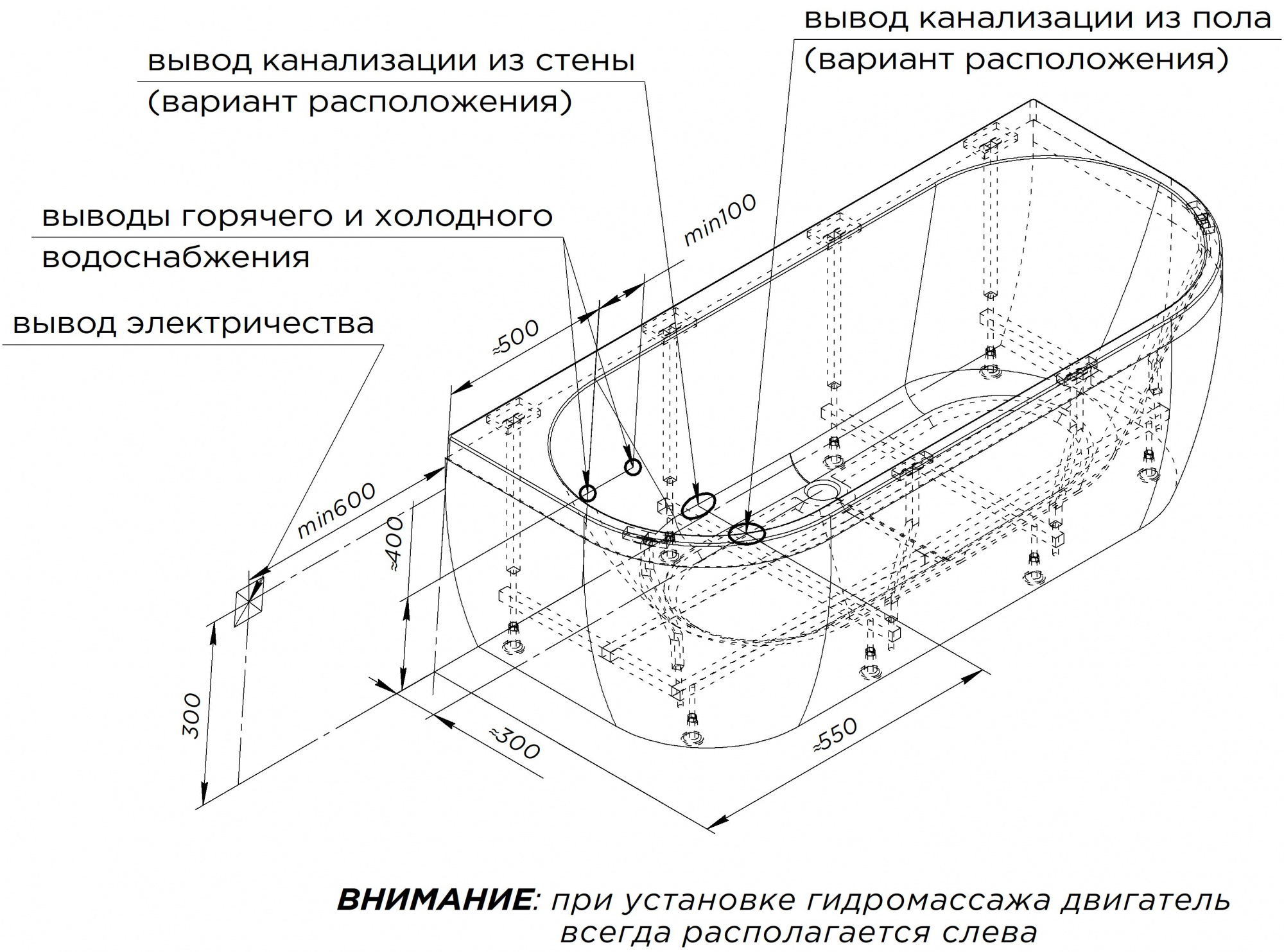 Тип ванны пристенная