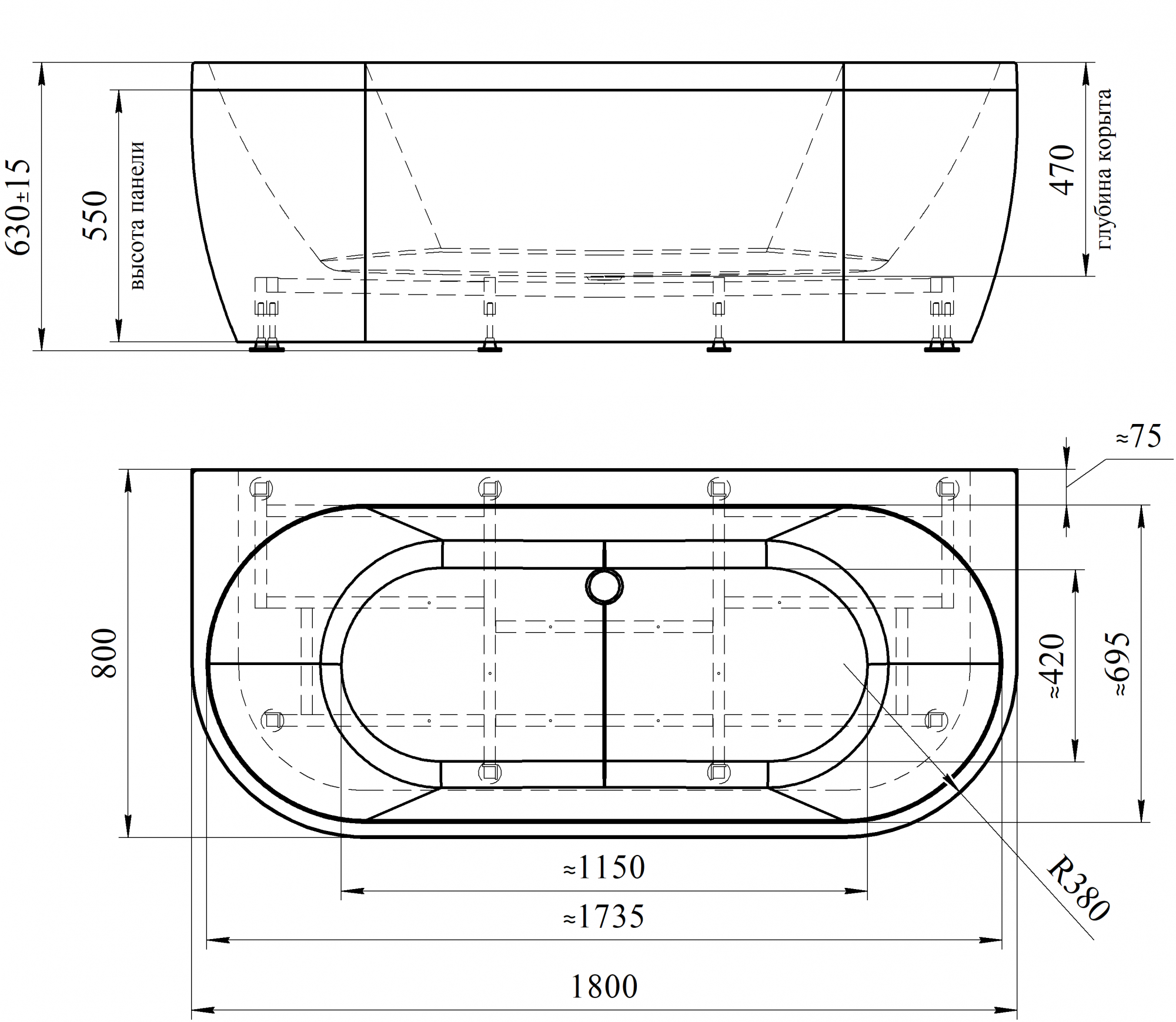 Оснащение (Ванны) каркас~панель~слив-перелив