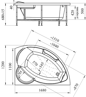 Ванна акриловая RADOMIR Vannesa Алари 2-76-2-2-0-218 168х120см угловая