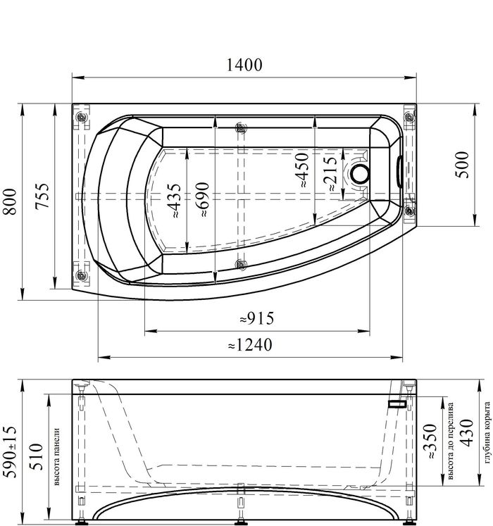 Тип ванны угловая