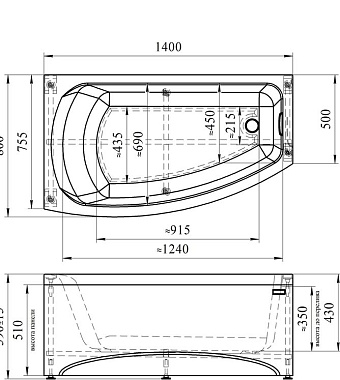 Ванна акриловая RADOMIR Vannesa Мэри 2-01-0-2-1-251 140х80см угловая - купить в интернет-магазине Орегон с доставкой в регионы Крыма.