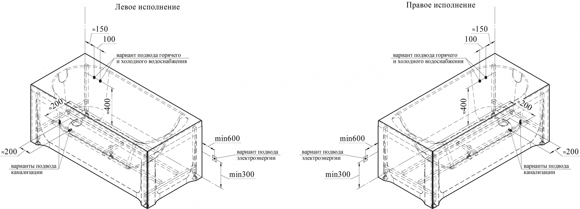 Тип ванны пристенная