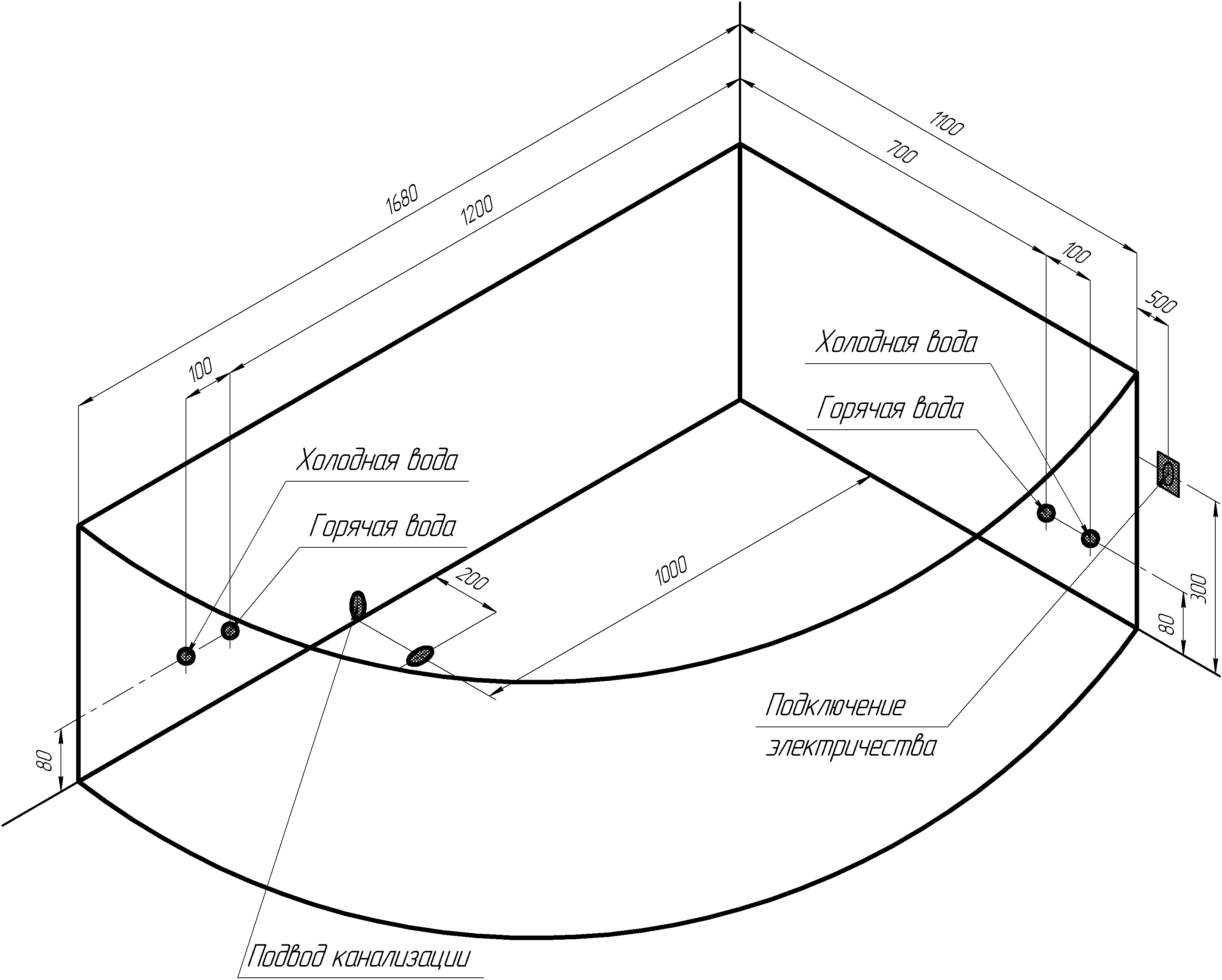 Тип ванны угловая