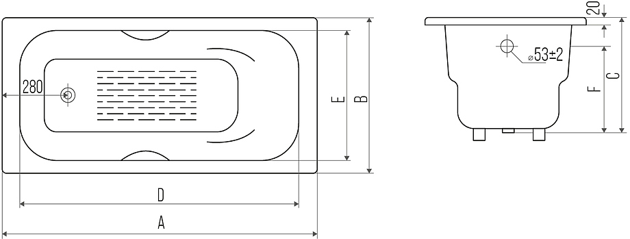 Тип ванны встраиваемая~пристенная