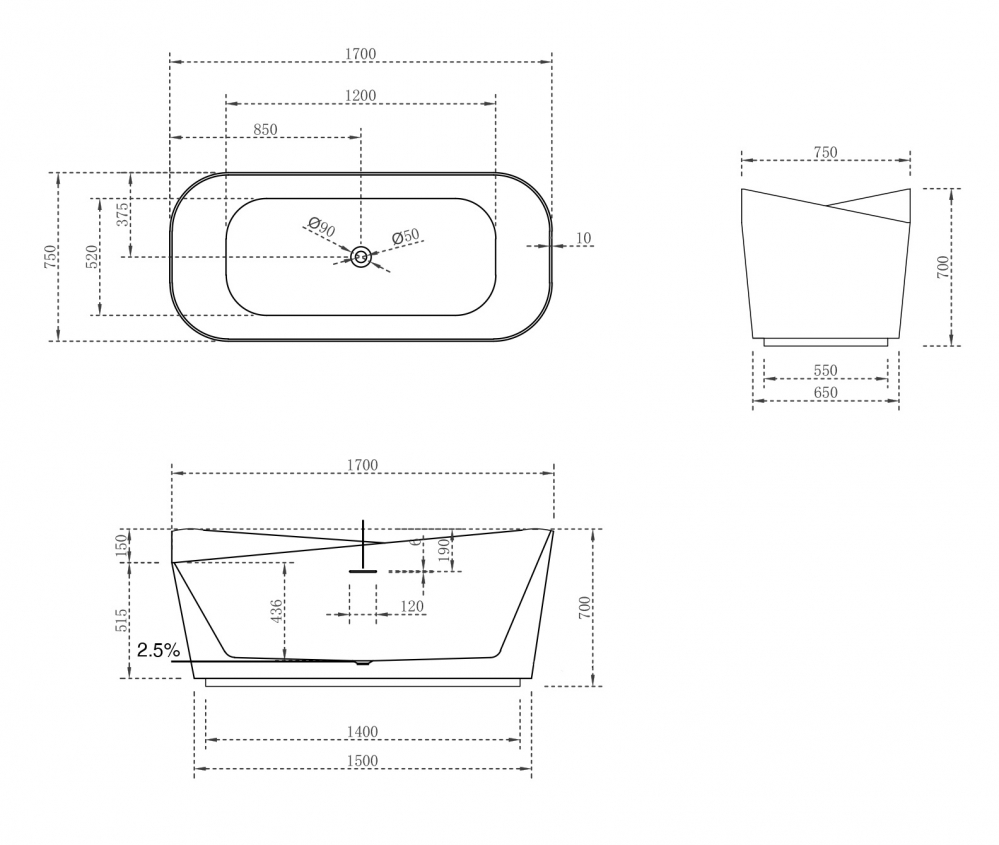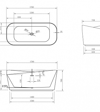 Тип ванны отдельностоящая