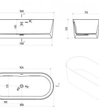 Ванна каменная Abber Stein AS9614 180х75см отдельностоящая - купить в интернет-магазине Орегон с доставкой в регионы Крыма.